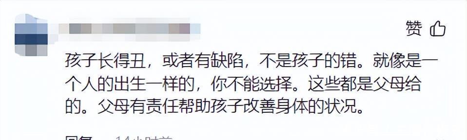 有網友分享:孩子長得丑,或者有缺陷,不是孩子的錯。就像是一個人的出生一樣的,你不能選擇。這些都是父母給的。父母有責任幫助孩子改善身體的狀況。有網友說:李嫣有出息,是做父母的最大慰籍。