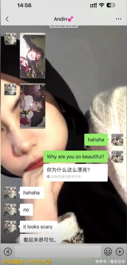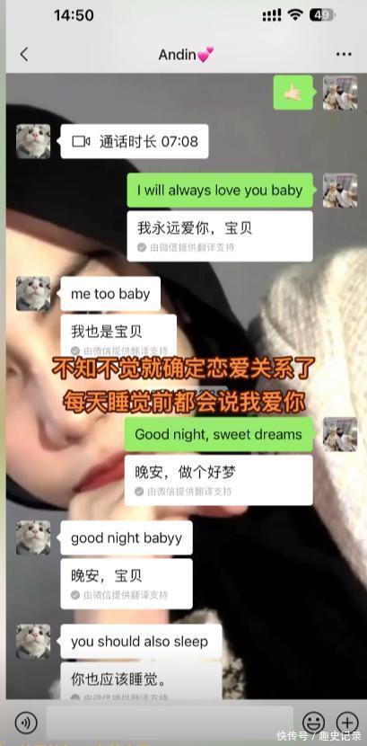 2024日,安迪妮和王瀚在聊天软件上相识,因为王瀚不会英语,他每聊一句都要复制到翻译软件上翻译,就觉得聊天效率太低。所以他推荐安迪妮下载了微信,然后两个人用微信聊了起来。